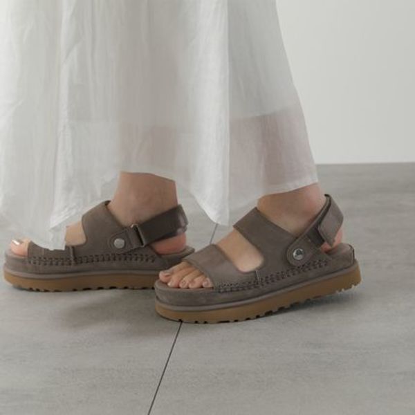 ゴールデンシリーズは、100%リサイクル・ポリエステル素材を使った環境にも優しいUGGのシューズライン。厚底モデルが多い一方、再生可能なサトウキビ由来のEVA素材を使ったソールだから軽量で歩きやすいという魅力で人気が集まっています。