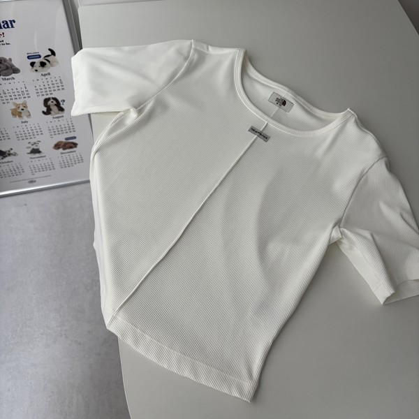 ∟「中央小さめロゴTシャツ」の人気に火をつけているのが、この韓国ノースフェイスの「SOFT WAVE」。センターシームと中央の小さなブランドタグが高見えし、全方位どこから見てもおしゃれな一着に。着丈が短く比較的タイトなシルエットも、今年っぽくて一押しかも!