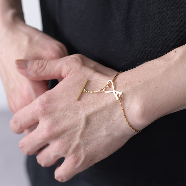 アイコニックなハートとAを合わせたロゴをモチーフとした繊細なチェーンブレスレットです。大人っぽい雰囲気が漂うアイテムなのでドレススタイルにもおすすめ。ペアブレスにも最適です。