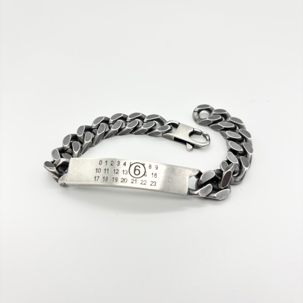 ナンバリングロゴが刻印されたエムエムシックスのチェーンブレスレットです。細めでシンプルなデザインなのでユニセックスで着用できます。