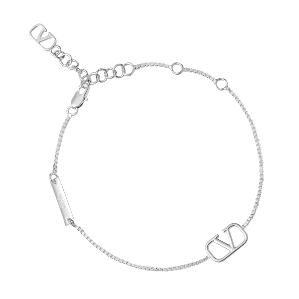 ロゴとIDプレートを組み合わせたチェーンタイプの細めのブレスレットです。上品で繊細なデザインなのでドレススタイルにもおすすめ。大人に似合うブレスレットです。
