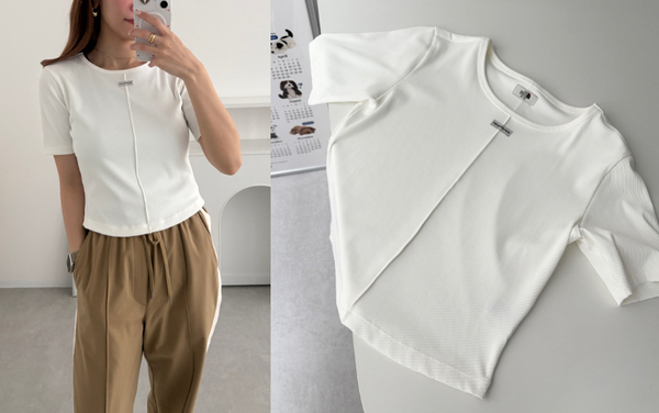 着るだけでくびれを生成してくれた韓国限定THE NORTH FACE(ザノースフェイス)の神T「SOFT WAVE」は、センターの切替えラインと小さなブランドタグが高見え! 着丈が程よく短めで比較的タイトなシルエットなので、綺麗めに着こなせてスタイルアップ効果絶大です◎(STYLE HAUS編集部員:Shiina)