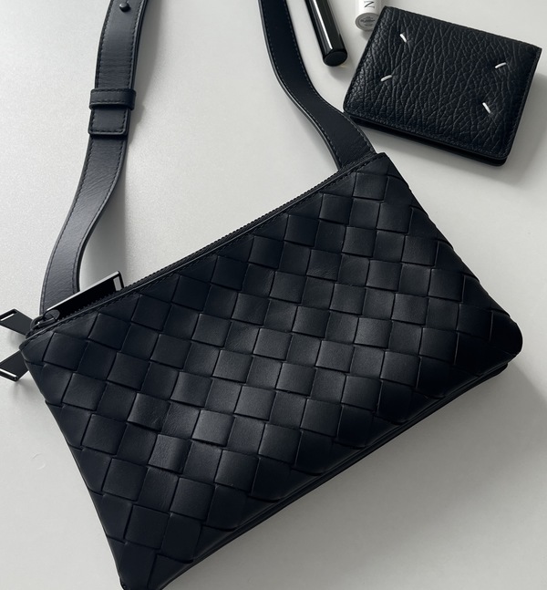 ∟高品質な素材と洗練されたデザインで高い定評を持つボッテガヴェネタ。中でも休日スタイルにピッタリなのが、ブランドの象徴ともいえるイントレチャート技術による編み込みレザーが特徴の「カセットクロスボディバッグ」。 休日のお出掛けや日常使いにぴったりなサイズ感で、持つだけでなんだか洒落てる。まさにメンズの格を上げる休日バッグと言えるでしょう!