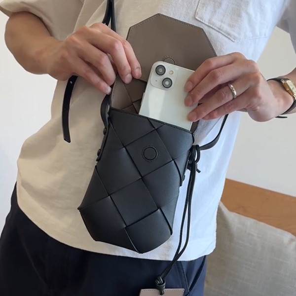 ∟大人の洗練さをより際立たせるのが、細かめのイントレチャート。夏はTシャツの上にかけてよし、秋冬にはコートの下でも活躍してくれるショルダーバッグで、これ見よがしのブランドロゴや派手なグラフィックがないところが素敵。クラシックで大人のムードが漂う休日バッグです!