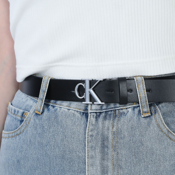 ✔ シンプルなレザー&“CK”ロゴバックルが洗練されたアクセントに