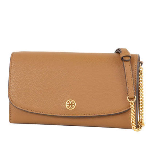 Tory Burch(トリーバーチ)のショルダーウォレットは、スクラッチレジスタント(耐傷性)なペブルレザーを採用し、毎日の使用に頼りになるタフさと上品な表情を両立。