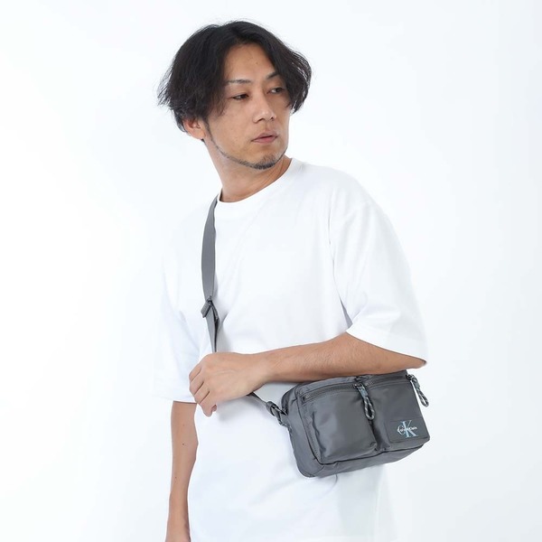黒のボディにグレーと白のロゴが映えるショルダーバッグです。スポーティな雰囲気ですのでストリートスタイルにも最適。サイズはH15cm×W22cm×D6cmです。