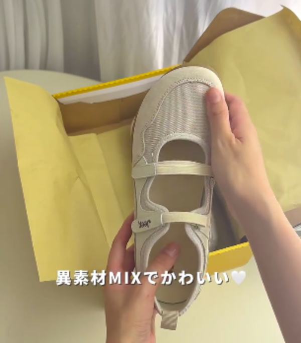 華奢ストラップがまさに“バレエコア”なスニーカー。異素材MIXで淡色だけどシンプル過ぎず、おしゃれ見え!スポーティー×フラットパンプス並みの上品さを兼備する1足です♡