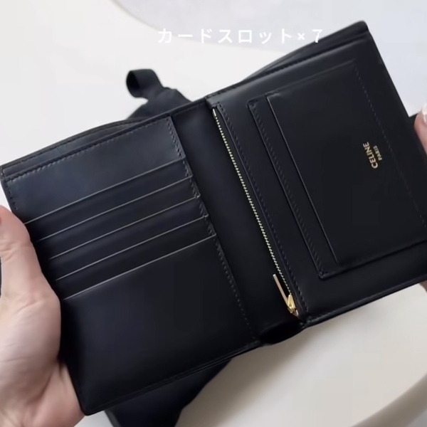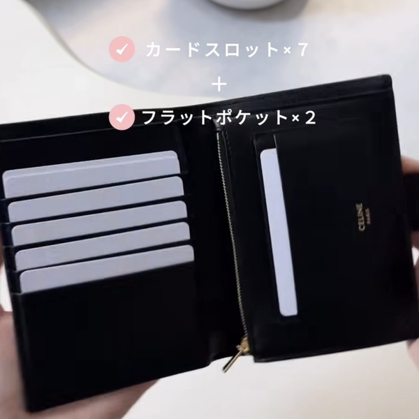 横から見ても分厚くならず、すっきりと上品に持ち歩けるのも大きな魅力。CELINEらしい洗練されたルックスはもちろん、使い勝手の良さも抜群なんです♡