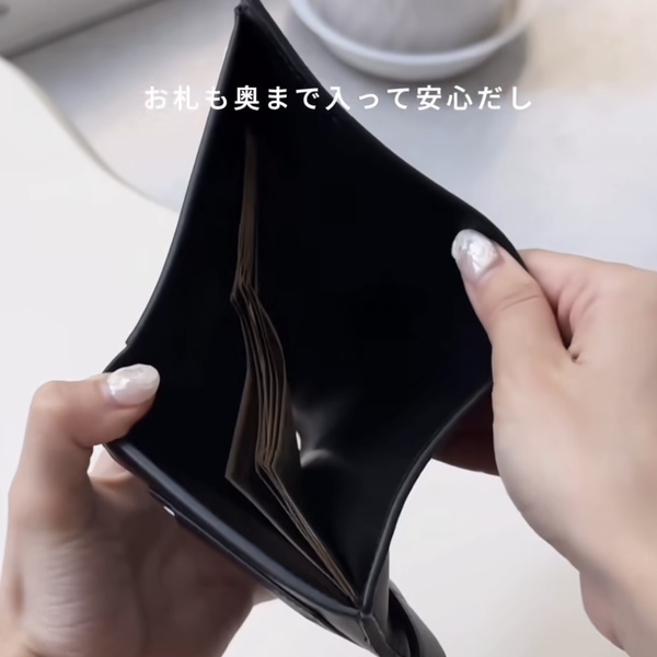 紙幣はもちろん、つい増えがちなレシートや領収書もきれいに整理できるサイズ感。現金派の方にも嬉しい仕様です。