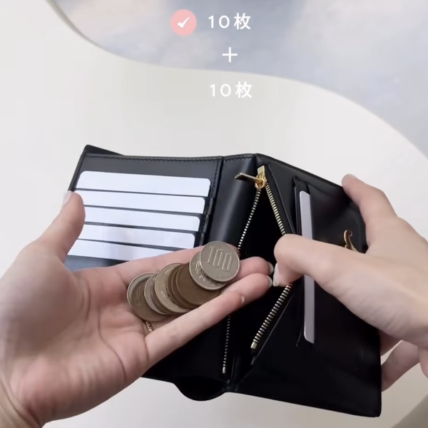 実際に小銭を20枚入れてみましたが、パンパンにならず見やすく取り出しやすい。現金派の方もキャッシュレス派の方も、どちらにも快適に使える仕様です。