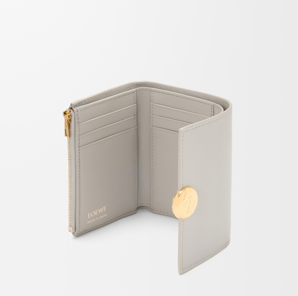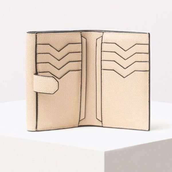 エンヴェロップ型のコンパクトなデザインに、6つの縦型カードスロットを持つ実用的な機能を持つ三つ折り財布。グレインレザーのライニングがフェミニンな印象を添えています!