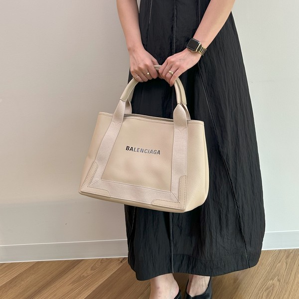 BALENCIAGAでは、上質なレザーバッグ以外にも、丈夫で軽いナイロン系のバッグが多数!特に旅行でおすすめの『カバ』は、マチも広くたっぷり入る大容量さ。スナップボタン式の開閉ボタンで中のものの出し入れもしやすいです。