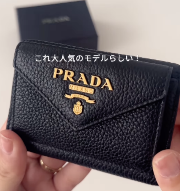 実用性と洗練されたデザインが支持されている王道人気のプラダ。実際にお取り寄せしたのは、大人気モデルの「三つ折りミニ財布」で、手のひらにすっぽり収まるサイズ感ながら高い収納力を持ち、型崩れしにくい丈夫なサフィアーノレザーを使用しているので、長く使えるのが嬉しいかも!
