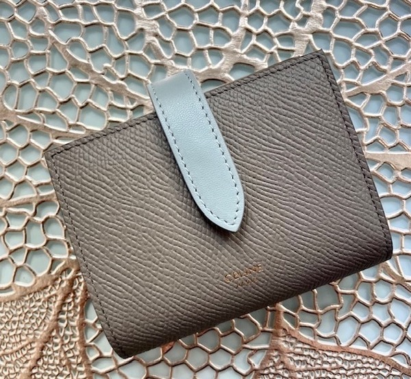 実はセリーヌ、お財布も海外アウトレットで買うのが最もお得!セリーヌを象徴するグレーにブルーのフラップがアクセントになった「バイカラーウォレット」を実際にお取り寄せ。コインポケットが中央に施されたセリーヌ特有の作りが特徴で、その両脇には計5つのカードスロットと、コンパクトながらお札入れも配備されています。