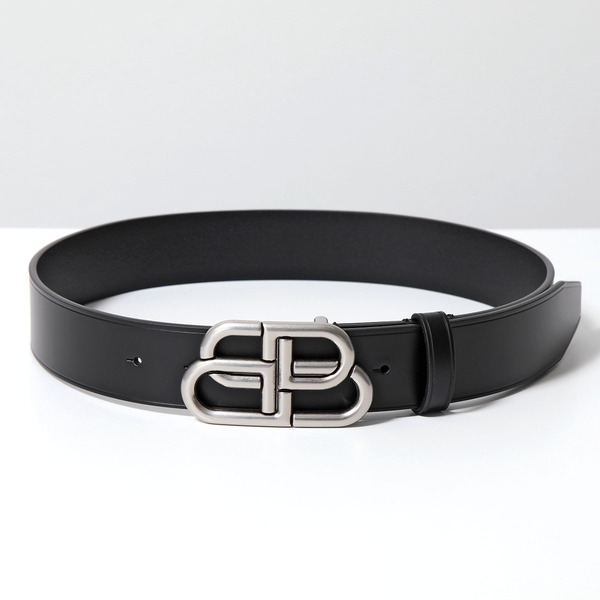 フロントにアンティーク調のインターロックBBロゴバックルがインパクト抜群のバレンシアガのレザーベルトです。カジュアルにもスーツスタイルにもマッチする逸品。