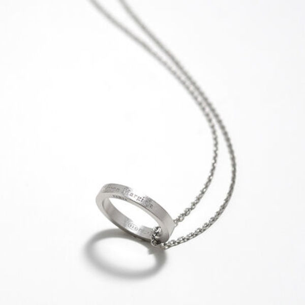 ロゴが刻印されたリングを細いチェーンに通したメゾンマルジェラの定番ネックレスです。クラシカルでシンプルなアイテムなので着こなしを選びません。シルバー素材なので長く愛用できます。