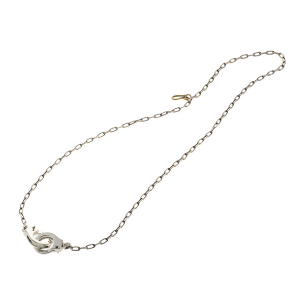 手錠モチーフがユニークなポールスミスのネックレスです。手錠両側のパーツを引き下げることで開閉する仕様になっています。フックにチェーンを引っかけることで長さ調節も可能です。シンプルなコーディネートのアクセントに最適。