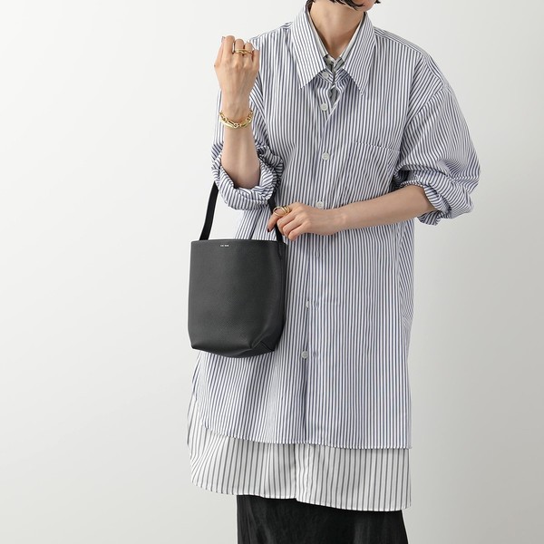 金具を一切使っていないシームレスな『パークトート』は、ザ・ロウの名品バッグ。スモールサイズは、ワンハンドルの縦長シルエットでスタイリッシュ。大人の着こなしにもぴったりです。