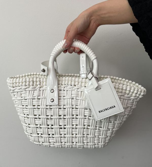 バスケットのようなカジュアルさもありつつ、バレンシアガらしいハイエンドさを備えた「BISTRO(ビストロ)」も海外アウトレットがお買い得!ビストロの最大の特徴は、フランスのビストロにある屋外のラタン製家具から着想を得て生まれたデザイン。コーティングを施したフェイクレザーを織り上げた唯一無二なデザインのかごバッグは、夏シーズンだけではなくオールシーズン活躍するバッグと言えます。