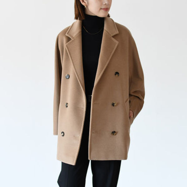 ∟「CABAN(カバン)」は、S Max Maraのアイコン的存在のダブルフェイス仕立てのピュアヴァージンウールコート。一つあるとシーンを選ばずに使える人気アイテムで、2枚のウールを一重に仕立てたコートは、軽くて柔らかい着心地が魅力です。ミドル丈のピーコートはスカート・パンツどちらとも相性抜群◎