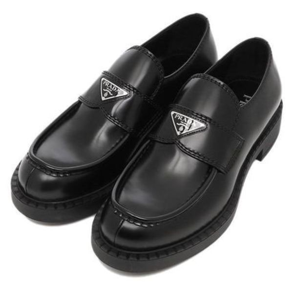 アッパーにあしらったトライアングルロゴプレートがアクセントのプラダのローファーです。ベーシックなカタチなのでミニマルなスタイルと相性抜群。オフスタイルにはもちろんビジネスシーンでも活躍してくれます。