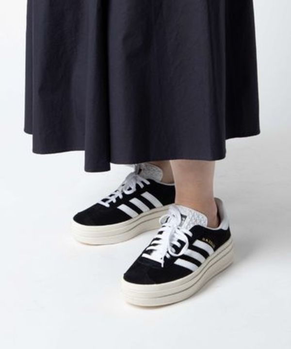 白×黒のコントラストデザインと厚底ソールが印象的な「GAZELLE BOLD」。他モデルに比べてボリューム感のあるフォルムがコーディネートのアクセントとして活躍!約4,5cmの厚底ソールでさりげなく脚長効果も狙えます◎