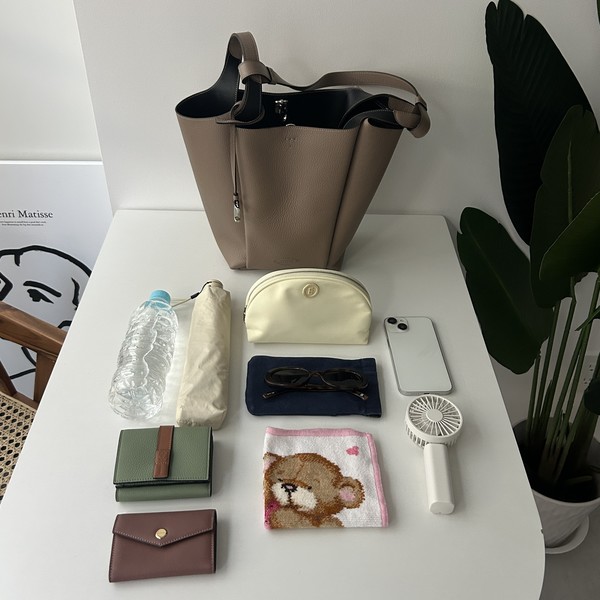 縦長のマイクロサイズは、ポケットで2つに仕切られているから整理整頓しやすいです。必要最低限のものは綺麗にまとまるので、ミニマル派さんにもぴったりです。
