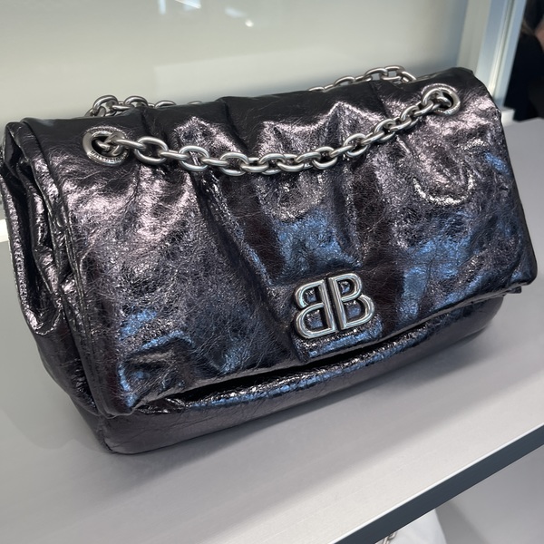 バレンシアガの「モナコバッグ」は、ミニでもミディアムでも、その存在感とモード感でコーディネートを格上げしてくれる一品。軽やかなミニは必要最低限のアイテムをスマートに収納でき、日常のお出かけにぴったり。ミディアムは収納力も抜群で、スマホや財布、手帳も整理して持ち運べます。上質なカーフレザーと立体的な「BB」ロゴが、バレンシアガらしい洗練された雰囲気を演出。肩掛けやクロスボディなど自由なスタイルが楽しめ、オンにもオフにも活躍する、長く愛用できるバッグなんです♡