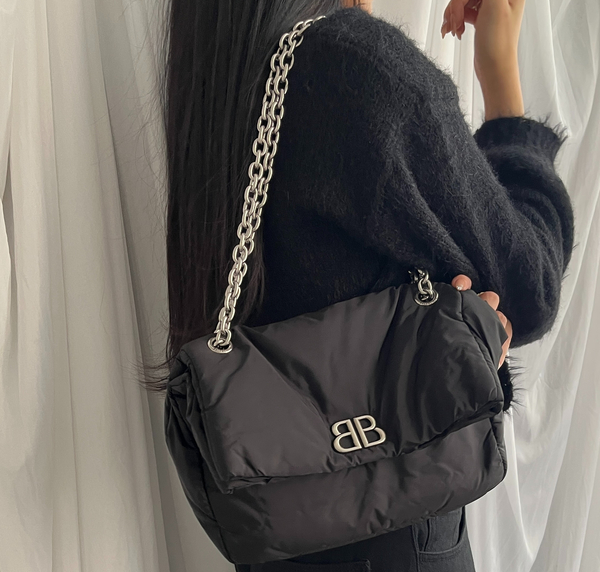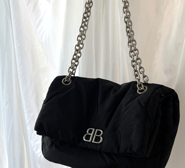 シルバーチェーン×ブラックレザーはモードの真骨頂。ミニサイズながらバレンシアガらしいエッジの効いたモード感を感じられます。