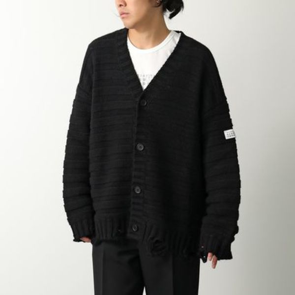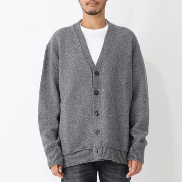 ∟無駄な装飾のない洗練されたディティールが特徴的なMaison Margiela(メゾン マルジェラ)。ルーズなカーディガンは、Mの文字をあしらった第一ボタンがポイント。バックには4ステッチもあしらわれ、マルジェラらしいさをさりげなく表現しています。