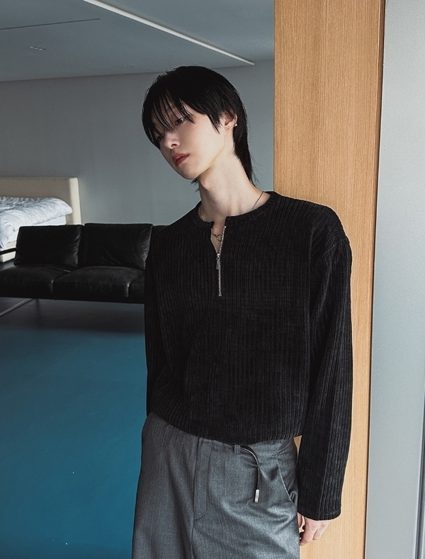 ハーフジップタイプのツープランのカットソーです。シンプルでありながらジップの開閉具合で様々な表情を見せてくれます。大人のデイリースタイルを色っぽく仕上げてくれる1枚です。