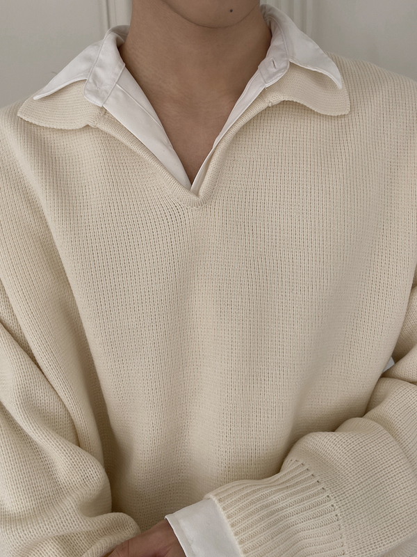 クリーンな雰囲気のエジュクロのオープンカラーニットです。クラシカルでシックな雰囲気のニットなので大人っぽい着こなしと相性抜群。1枚ではもちろんですが、セットアップのインナーとしてもおすすめです。