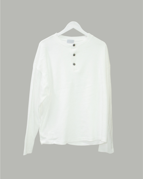 スナップボタンタイプのヘンリーネックカットソーはハイファイファンクのアイテム。すっきりとしたシルエットなのでアウターとしてもインナーとしても活躍してくれます。