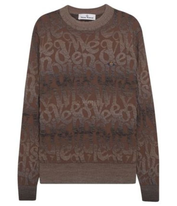 全面にブランドロゴを配したヴィヴィアンウエストウッドのニットです。ブラウンのグラデーションがお洒落な1枚。存在感のあるニットです。