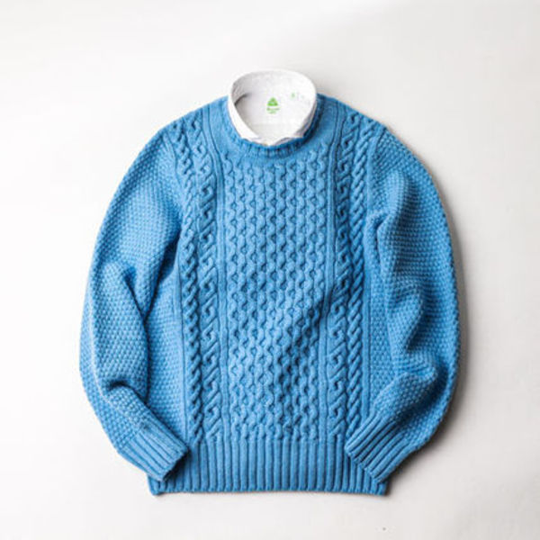 幾通りものパターンで緩く編みこまれたニットは芸術品ともいえるデザインのドルモアのクルーネックニットです。