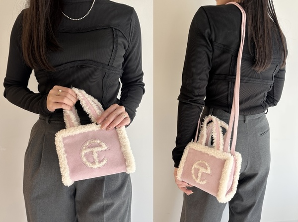Telfar(テルファー)の代名詞である“ショッピングバッグ”のフォルムはそのままに、UGG(アグ)らしい上質なシープスキン&スエードをあしらった愛らしさ満点のデザイン。冬の着こなしに取り入れたくなる素材感で、何気ないシンプルスタイルに一点投入するだけで主役級の存在感をまとわせてくれます。
