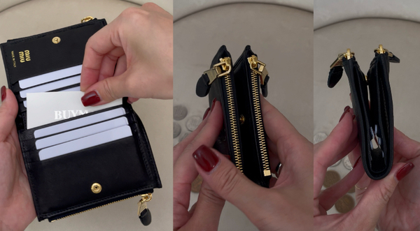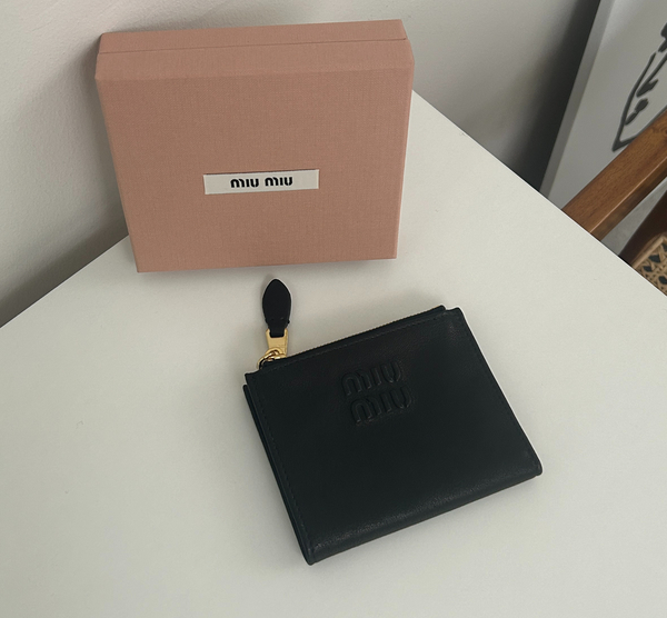 ファッション界において絶大な存在感を示しているMiuMiu(ミュウミュウ)。ヴィンテージ感のあるナッパレザー製の折りたたみ財布はロゴがエンボス加工された控えめな印象で、便利なジップポケットがふたつ備わっていたりと、薄型でありながらもカード&現金がたっぷり入るスマートな収納力を発揮してくれます。
