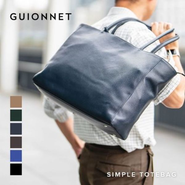 GUIONNET(ギオネ)のトートバッグは、ビジネスシーンに最適なシンプルなデザインが特徴です。A4サイズの書類やノートパソコンも収納可能で、ジム用のウェアやシューズも余裕で入ります。高品質な素材と丁寧な縫製が、長時間の使用でも型崩れしにくく、耐久性を確保しています。