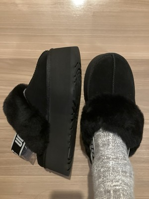 しっかりした成形に暖かいもふもふ感、バックベルトデザインで安定感もあり、厚底なので身長もアップしてアウターでボリュームが出るこれからの季節にはスッキリとした姿になれそうです♪