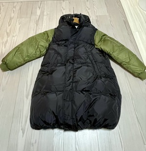 161センチで、普通体型すが、ひとつ下のサイズ、もしくはふたつ下のサイズでもいけるぐらい大きかったです。少しフォルムがAラインなこともあり、かなりゆとりのあるお作りです。腕の部分がカーキ色でツートーンになっているのは可愛いです。