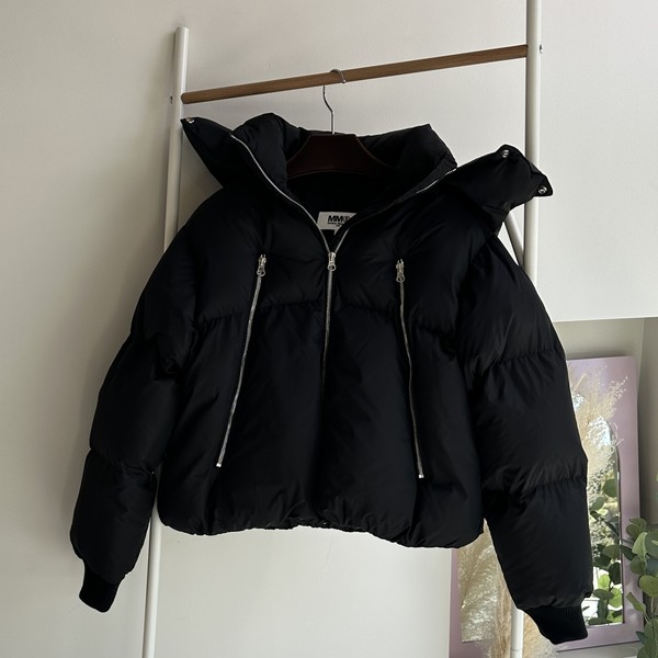 今季登場した中綿入りパテッドナイロンジャケット。胸元にナンバリングロゴ刺繍のパッチがあしらわれMM6らしさを忘れません。