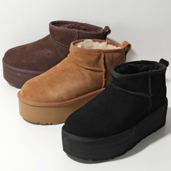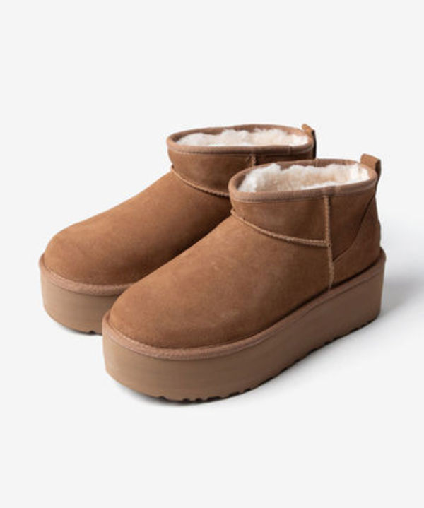 UGGの定番モデル「クラシック ウルトラ ミニ プラットフォーム」は、1足ゲットしておきたい大人気ブーツ♡かなりのショート丈なので、ロングスカートやワイドパンツ、ワンピースなどともバランスを取りやすいです。約5cmのプラットフォームがさりげなくスタイルアップを叶えます。