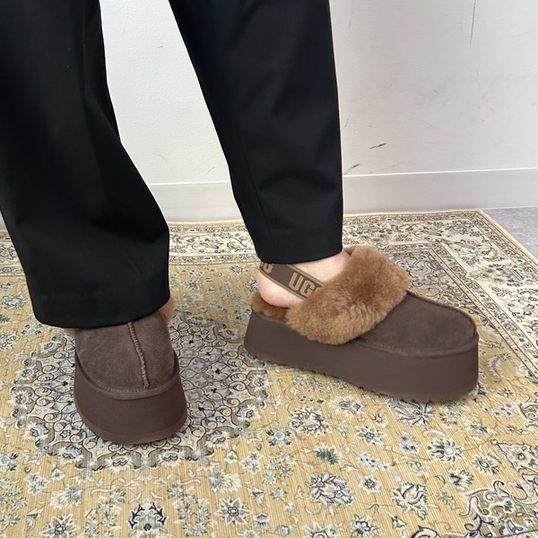 サッと着脱しやすい「ファンケット」も、UGGの定番シューズの1つ。ボリューミーなファーと程よいプラットフォームで存在感抜群!!モカカラーは大人っぽく、パンツやワンピースと組み合わせるのがおすすめです。