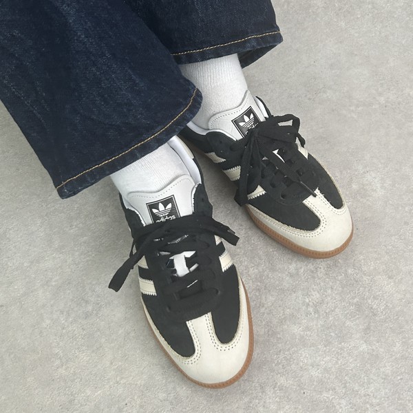 アディダスを代表するクラシックなスニーカー「サンバOG」。スッキリシャープな見た目とレトロな配色がポイント。ワントーンなクリームホワイトは、きれいめコーデにも相性抜群です。
