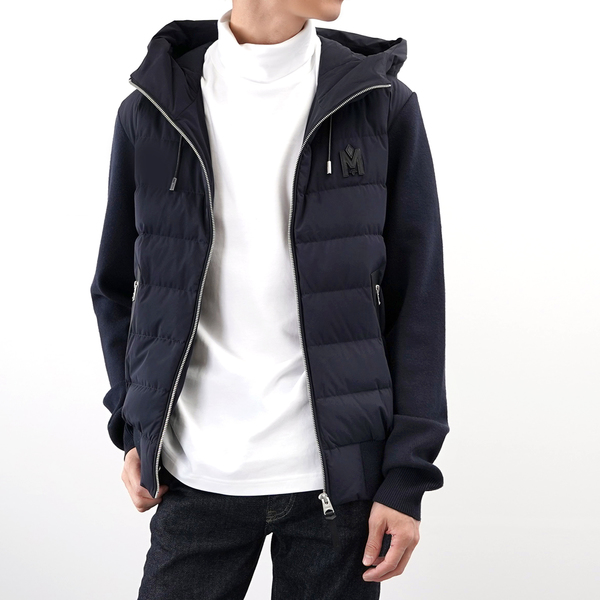 マッカージュのライトダウンハイブリッドジャケットです。袖部分はニットになっているので上品。軽く羽織れて、インナーとしてもアウターとしても活躍してくれる逸品です。