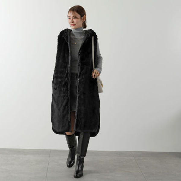 Max Mara「The Cube」コレクションのファーベスト FLORIAN(フロリアン)は、リバーシブルで着られるロング丈ジレです。フード付きで、寒い季節でも首元までしっかり暖かく、着こなしのアレンジもしやすいデザインです。