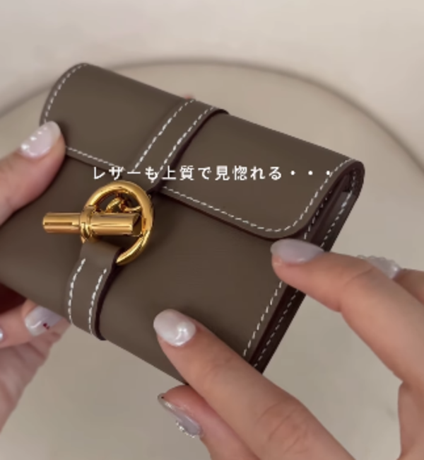 ∟エルメスの「グレナンコンパクト」は、そのシンプルで洗練されたデザインが特徴のお財布。レザーブレスレットでおなじみの《グレナン》と同様に、「シェーヌ・ダンクル」のブレスレットから昇華されたメゾンのアイコニックなクラスプを取り入れ、クラシカルなグレージュカラーに、柔らかなスイフト素材が高級感を漂わせています。