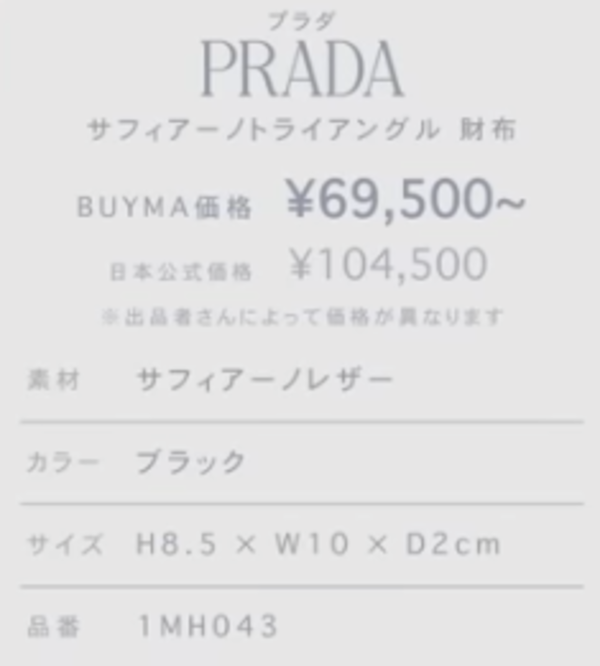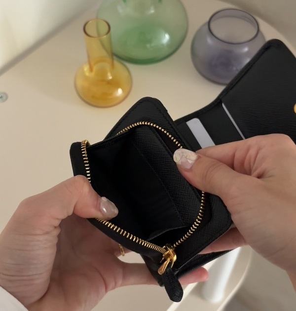 ∟まずご紹介するのはプラダのお財布。プラダのお財布は今までたくさんレビューをしてきましたが、やはり使いやすいモデルが多いという印象です。中もでいま人気なのが、こちらの三折りタイプの「サフィアーノ トライアングル 財布」。こちらはバイマなら5万円台から買えるていうところも人気の理由の1つとなっています!