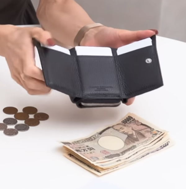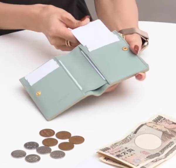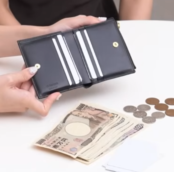 ☑︎カード:10枚 ☑︎紙幣:5枚 ☑︎コイン:10枚 お札は2つ折りにした状態で入れると少しはみ出るぐらい。この状態でフラップを閉じることはできますが数mm程度、ちょっと紙が折れ曲がってしまうので気になる方は3つ折りにして入れていただくといいと思います。